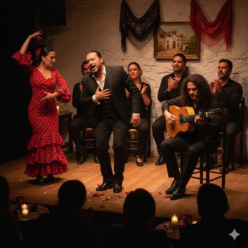 - El Baile (Der Tanz): Die sichtbare Leidenschaft. Achten Sie auf die Zapateados (die Fußarbeit).