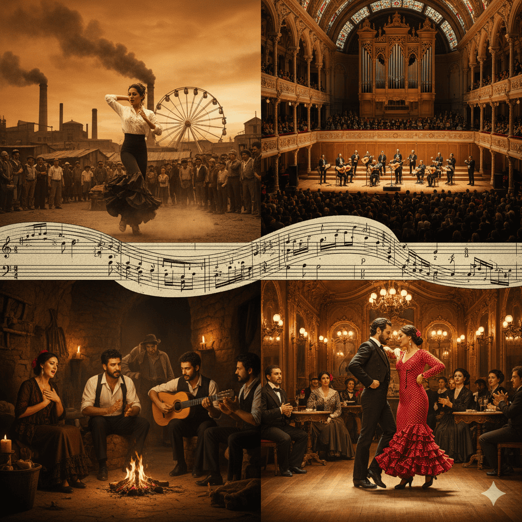 Zur Zeit von Gaudí und anderen Architekten suchte die Elite nach einer nationalen spanischen Identität, die gleichzeitig modern war. Flamenco-Künstler traten in prachtvollen Gebäuden wie dem Palau de la Música Catalana auf, was der Kunstform einen prestigeträchtigen, fast opernhaften Rahmen verlieh.
